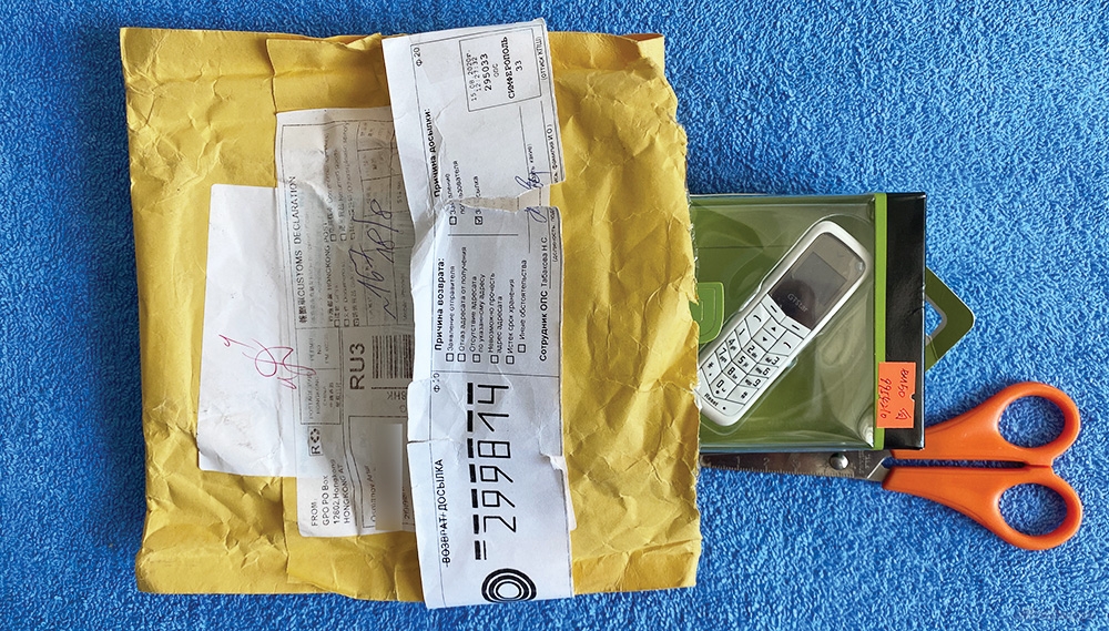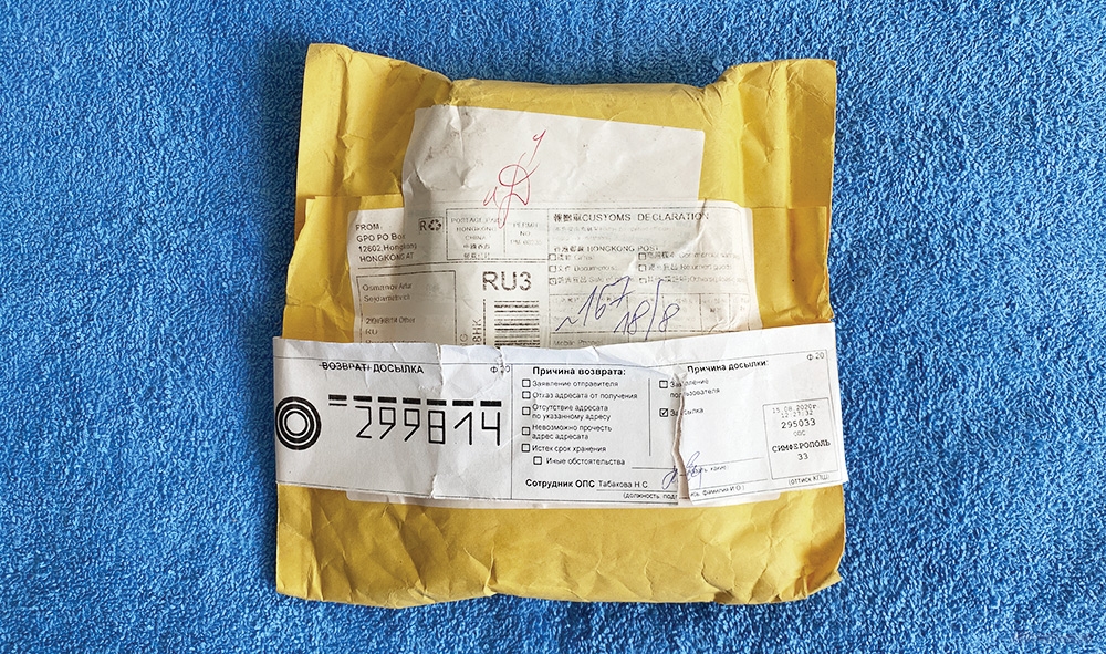 Получил такую вот посылку с телефоном алиэкспресс, на которую Симферопольские работники Почты России прицепили бирку досылки с указанием моего настоящего Крымского индекса