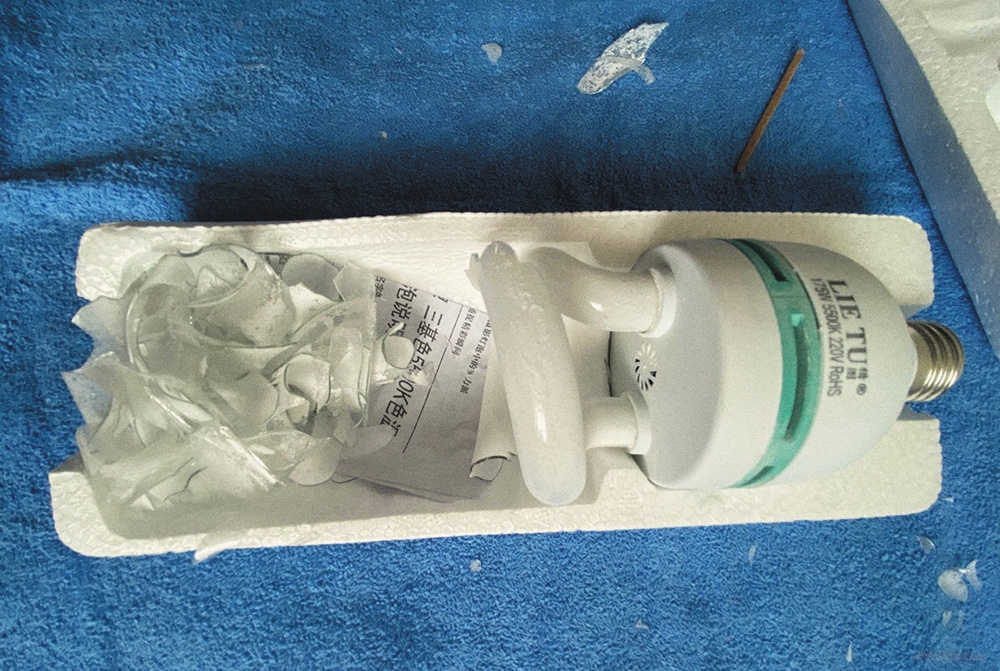 По приходу домой распаковал посылку и естественно опять поломанная лампа вдребезги...
