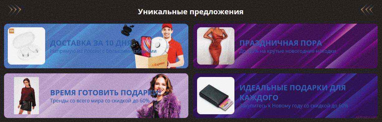 Так же можно получить спецкупон алиэкспресс и по стандарту установлен виджет с 3-мя лучшими товарами с данного раздела, на основе интересов каждого профиля