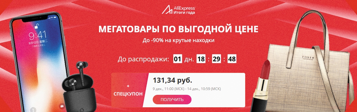 Распродажа на алиэкспресс "Итоги года 2019" пойдёт с 9 декабря 11:00 (МСК) - 14 декабря 10:59 (МСК)