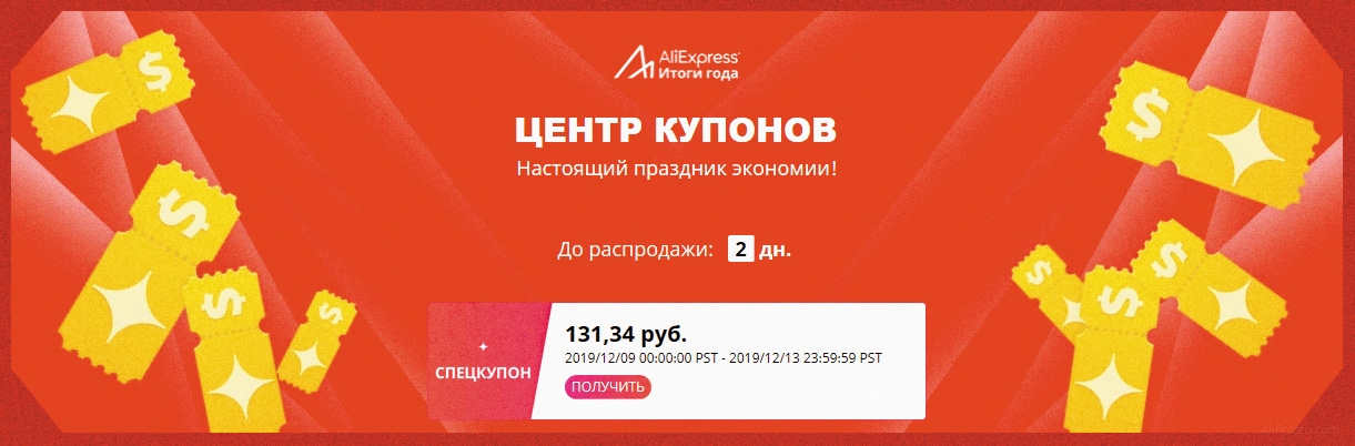 В честь новогодней ярмарки скидок 2019 - алиэкспресс так же приготовил отдельную страницу, где мы можем получить Купоны продавцов на определенные товары или на все товары магазине у которого получили данный купон. И назвал алиэкспресс данную страницу ЦЕНТР КУПОНОВ с лозунгом "Настоящий праздник экономии"