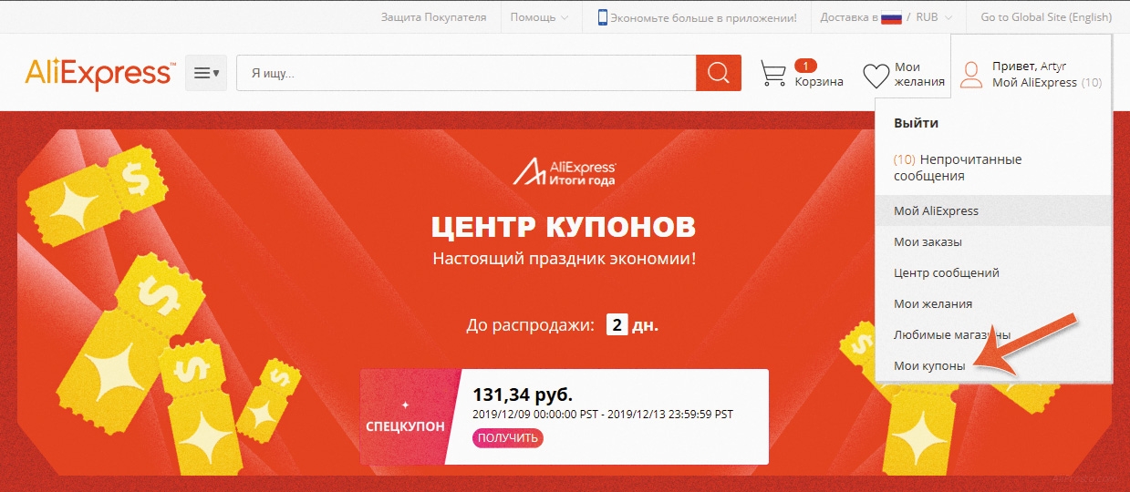 Перейти на страницу Центр Купонов для получения Купона продавца или Спецкупона можно тут