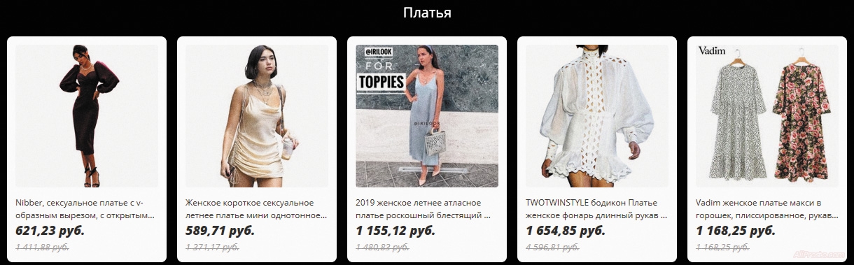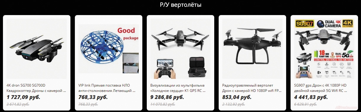 Ниже расположены главные и популярные товары по категориям: Мобильные телефоны, наушники, платья, подстилки для собак, гели для ногтей, Р/У вертолёты