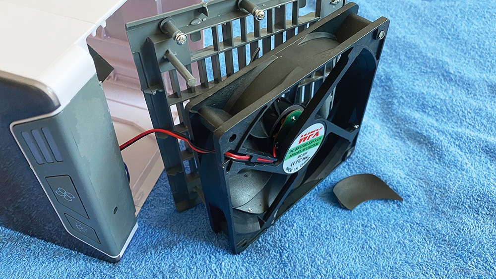 Теперь всё встало на свои места - вентилятор оказывается "вышел" со своего места и именно поэтому никакого результата нет - кроме пускания влажного воздуха.