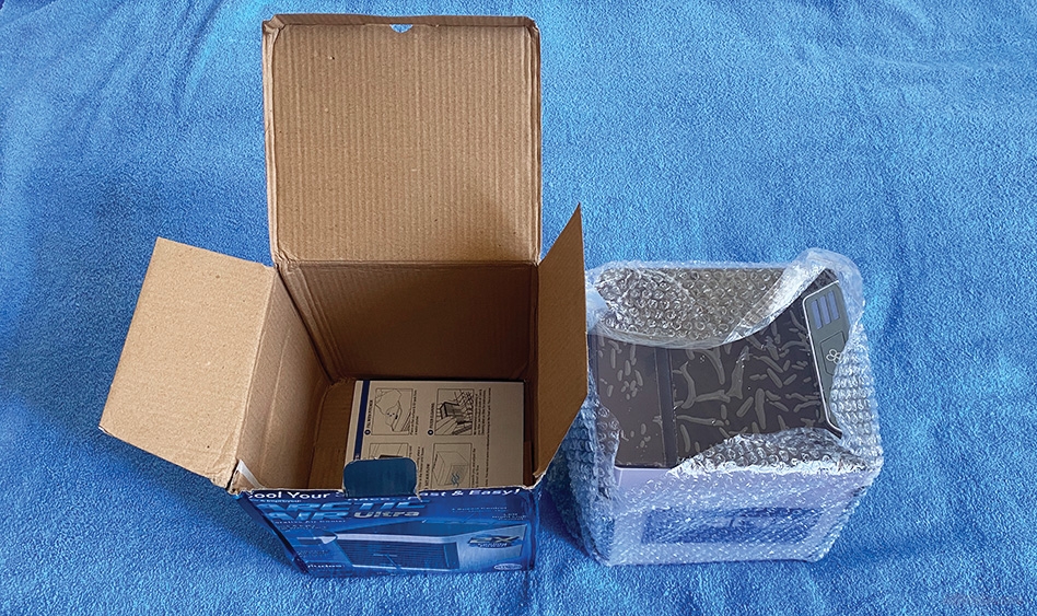 Первое что было понятно на ощупь - это плохо упакованная посылка для преодоления такого большого расстояния, а именно данный кондиционер даже не положили в коробку, а просто обмотали каким то сарафаном и завернули в пакет для пересылки. Думаю не стоит на этом останавливаться а стоит перейти к распаковки данного мини кондиционера с алиэкспресс