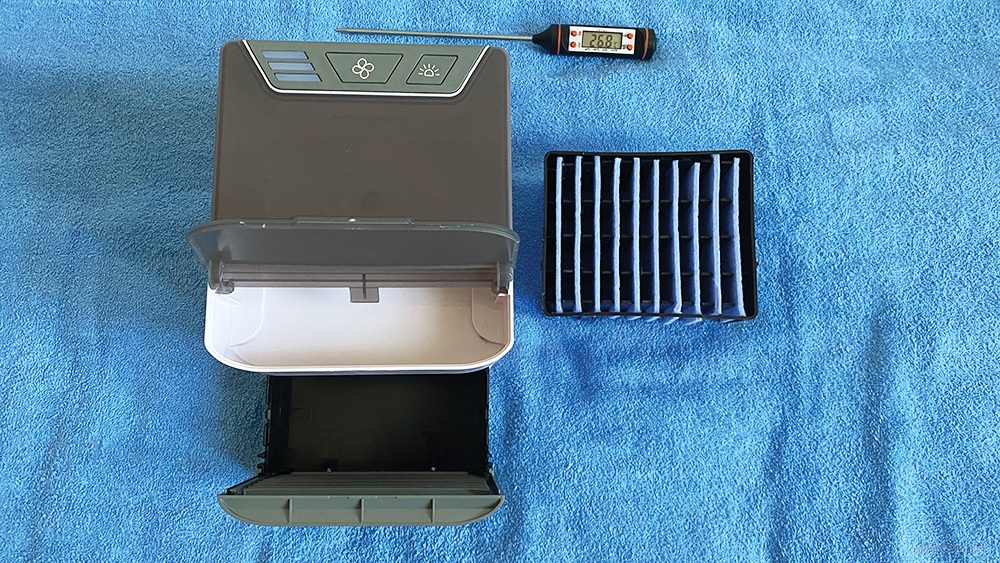 Температура в комнате 26,8С - теперь подключаем кондиционер и закрываем окна. Далее наливаем немного холодной воды в соответствующий отсек кондиционера