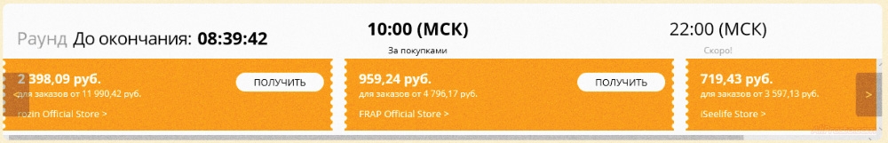 На главной странице в подборке сразу видны купоны на различные магазины, которые алиэкспресс раздаёт в определенные промежутки времени