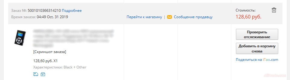 Ах да, заказ данного мп3 плеера с алиэкспресс был сделан ещё 31 октября 2019 за 128,60 руб