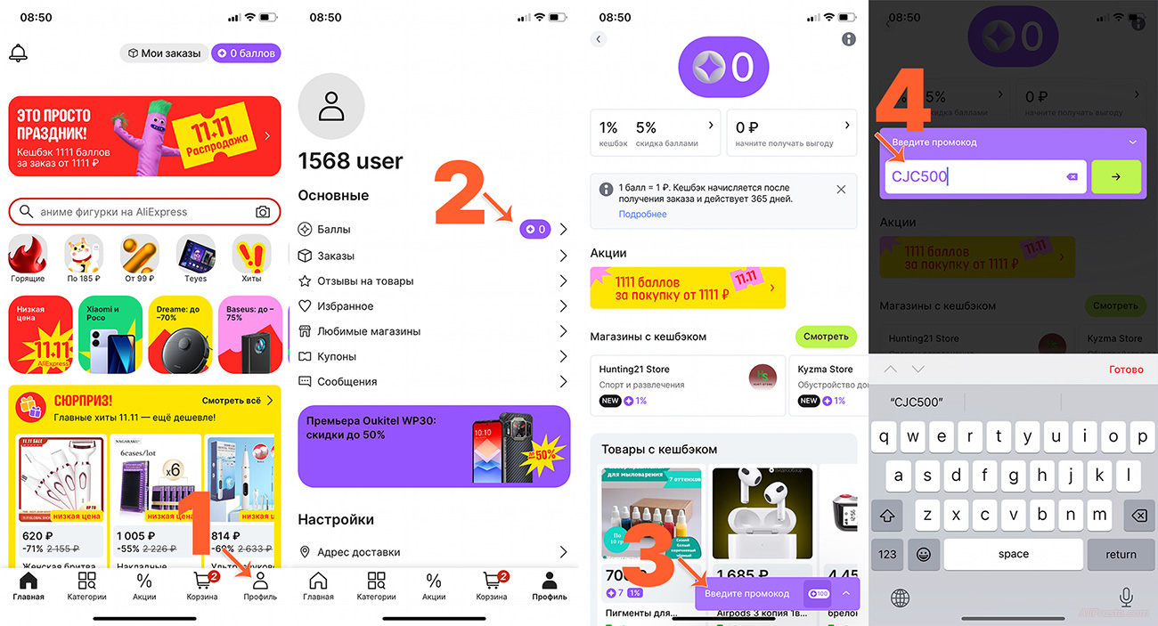 1. Промокод на 500 баллов АлиЭкспресс