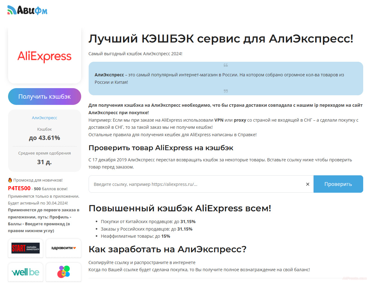 Многие уже знают, что самый лучший кэшбэк для АлиЭкспресс - это кэшбэк сервис от АвиФм. Ведь именно на АвиФм самые большие ставки по возвращению кэшбэка для АлиЭкспресс