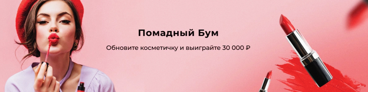 На странице распродажи косметики можно найти различные акции, такие как розыгрыш 3-х промокодов номиналом 30 000 рублей, подарки в магазинах - партнерах, акция "3=2" и естественно промокод алиэкспресс 2021 активные