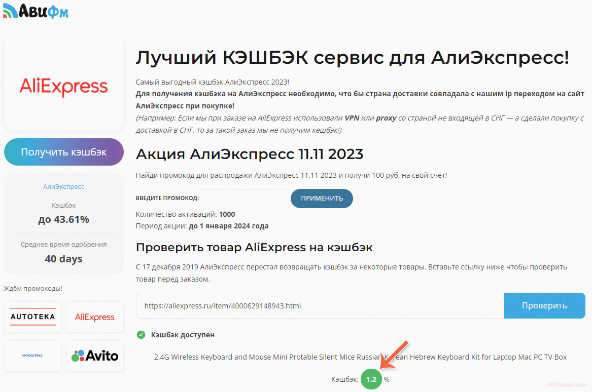 Ссылка на кэшбэк сервис: https://avifm.ru/shops/luchshij-keshbek-aliekspress/