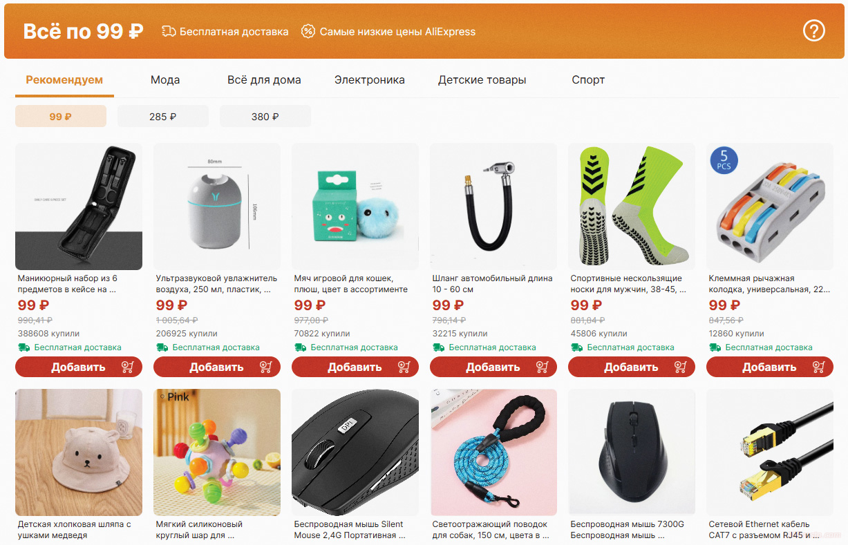 Страница Всё по 99 рублей тут: https://aliclick.shop/r/c/1rqu63vk0o2dno7r