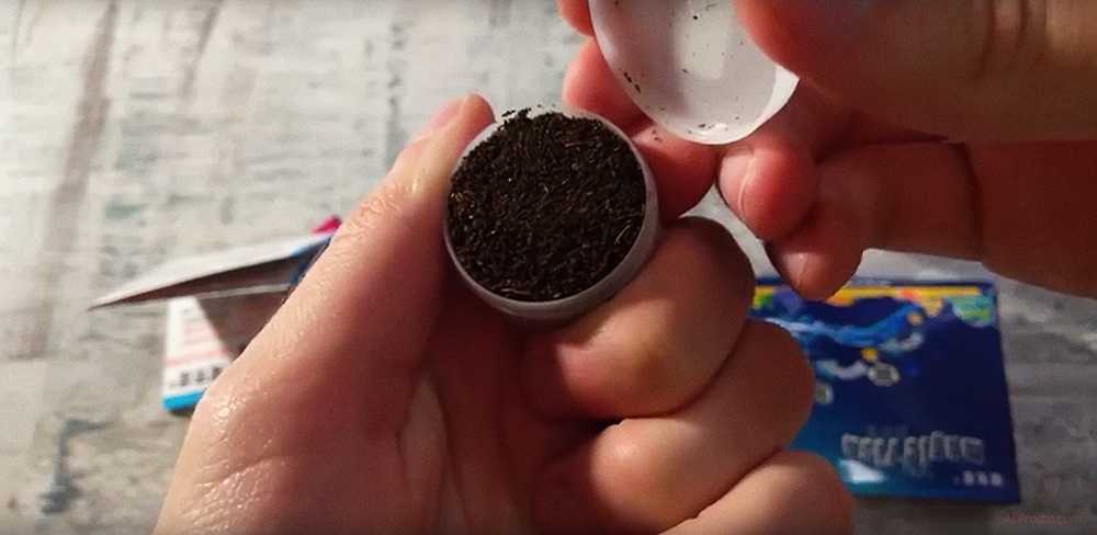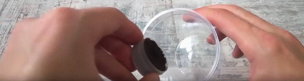 Достаём одноразовый стаканчик и высыпаем землю с икринками, в стакан: