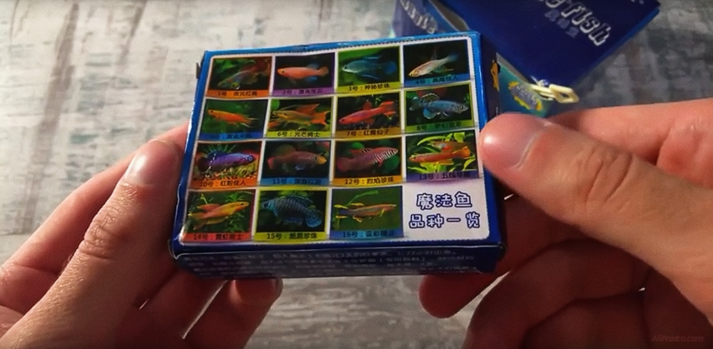 В данной коробке, есть маленькие коробки (Всё зависит от вашего выбора и заказа) Каждая коробка - это отдельный шанс, вылупить от 5 - 35 мелких рыбок.