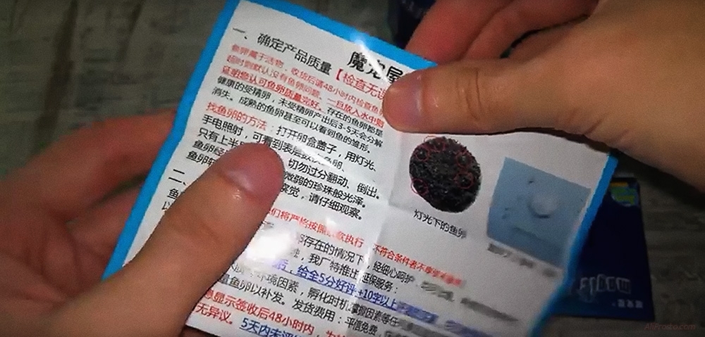 Следующее, достаём с этой маленькой коробки - это инструкция для чудо рыбок, с алиэкспресс