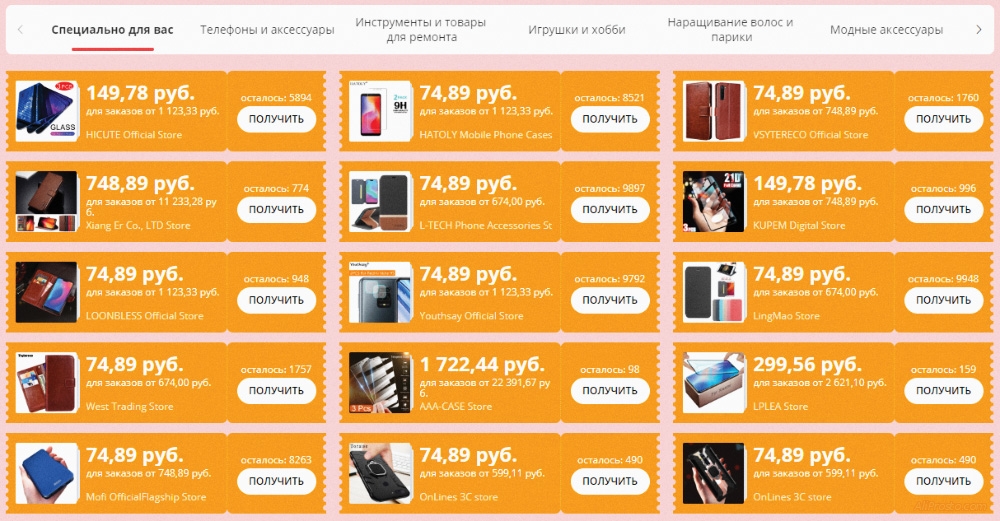АлиЭкспресс заявляет что данная страница - это территория безумных скидок, где собраны скидки до 70% на товары различных категорий.