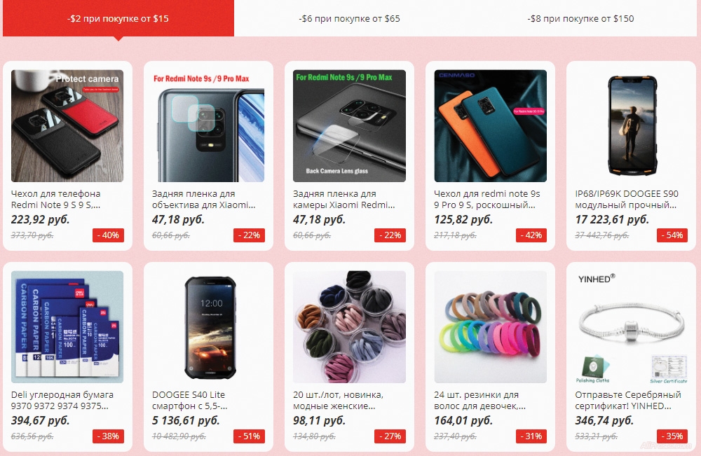 В первую очередь выставлены самые интересные категории и товары на основе рекомендаций для профиля - через которой был осуществлён вход на алиэкспресс. АлиЭкспресс заявил что на главной странице распродажи разместил товары со скидкой до 50%, для меня самые интересные товары получились такие: